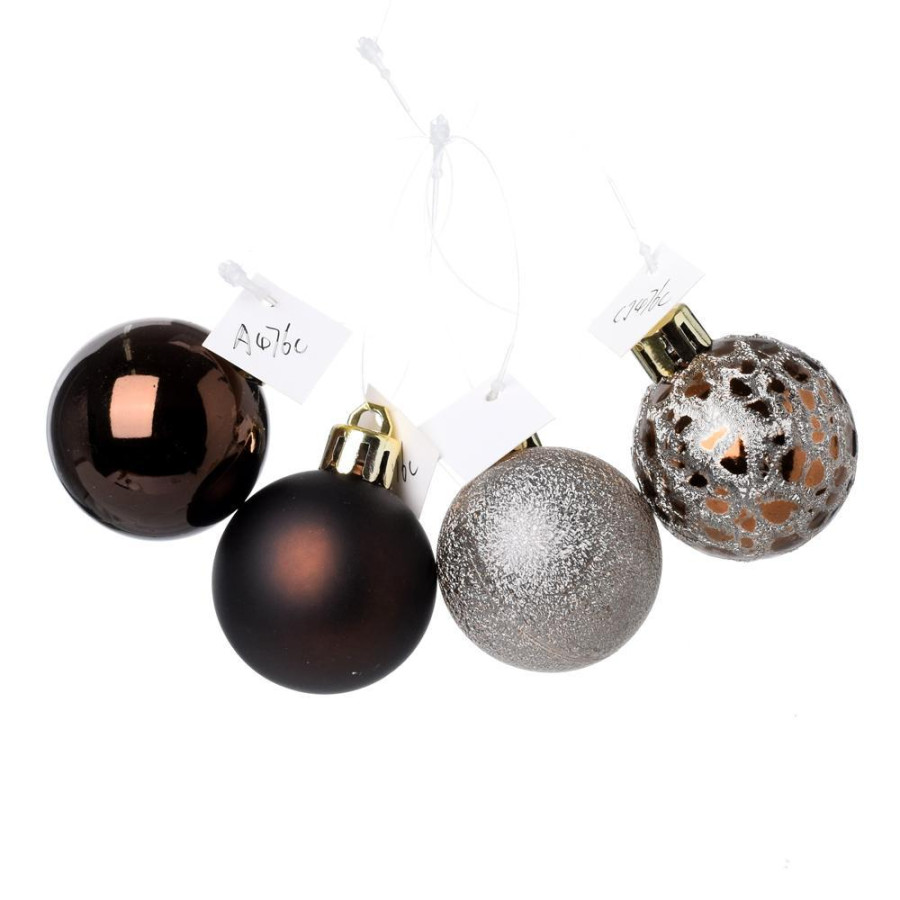 Ozdoba závesná guľa 8cm sada 8ks plast hnedá mix