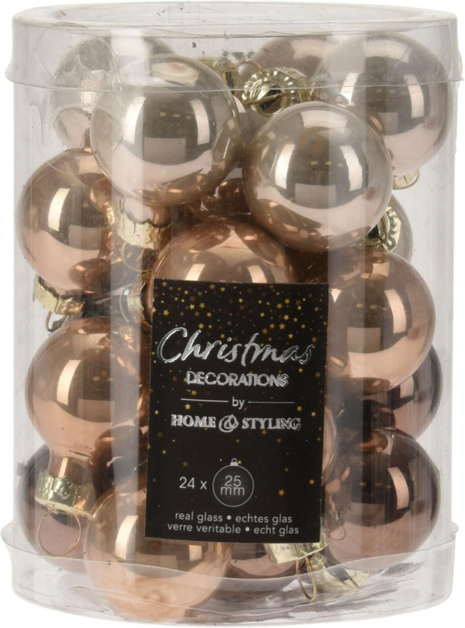 závesná ozdoba, dekorácia, vianočná guľa, materiál sklo, priemer 2,5 cm, sada 24 ks - 8x tmavo hnedá, 8x zlatá, 8x krémová, mix
