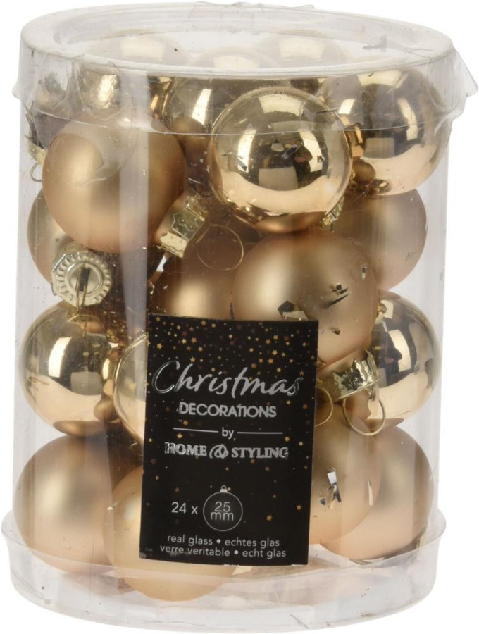 závesná ozdoba, dekorácia, vianočná guľa, materiál sklo, priemer 2,5 cm, sada 24 ks - 12x lesklá, 12x matná, zlatá, mix