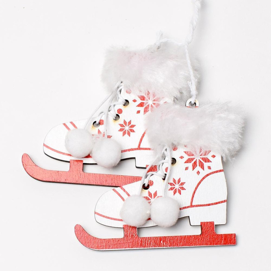 závesná ozdoba, dekorácia, korčule, materiál drevo, rozmer 20x8x2 cm, bielo-červené