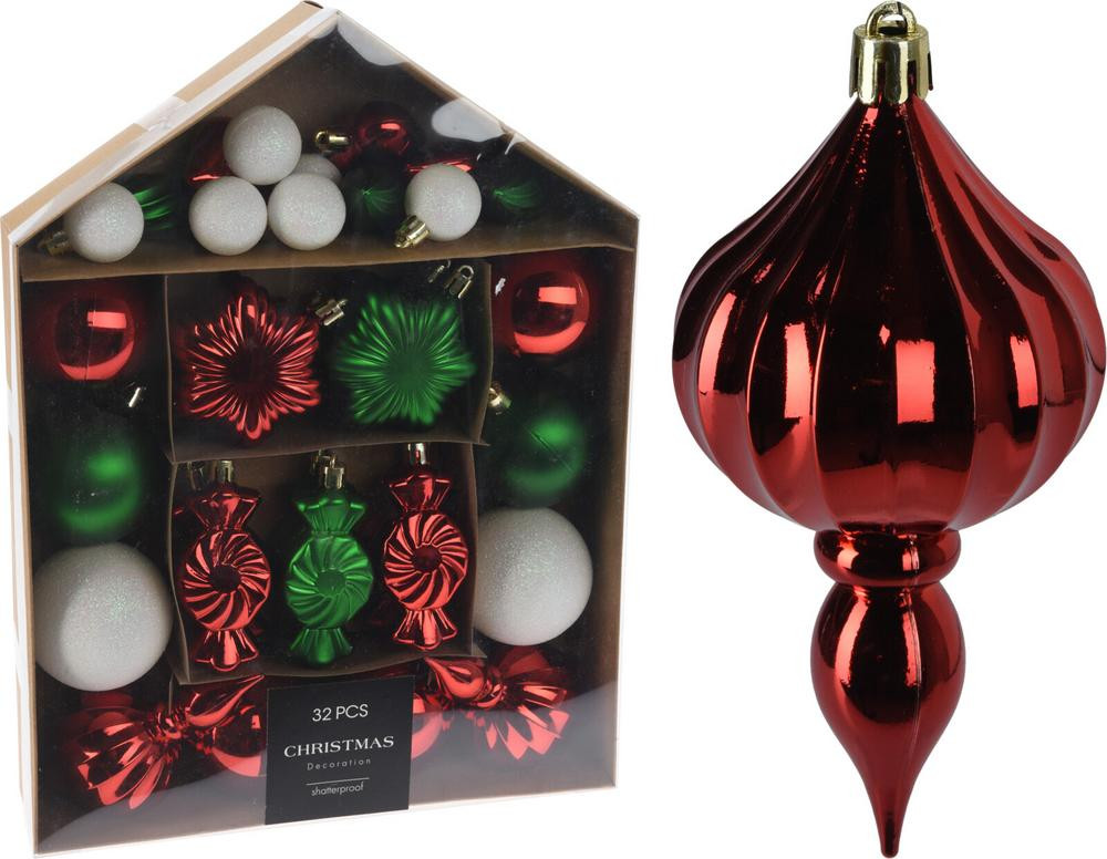 ozdoba závesná, sada 32 ks, materiál polystyrén, farba červená/zelená/biela, mix