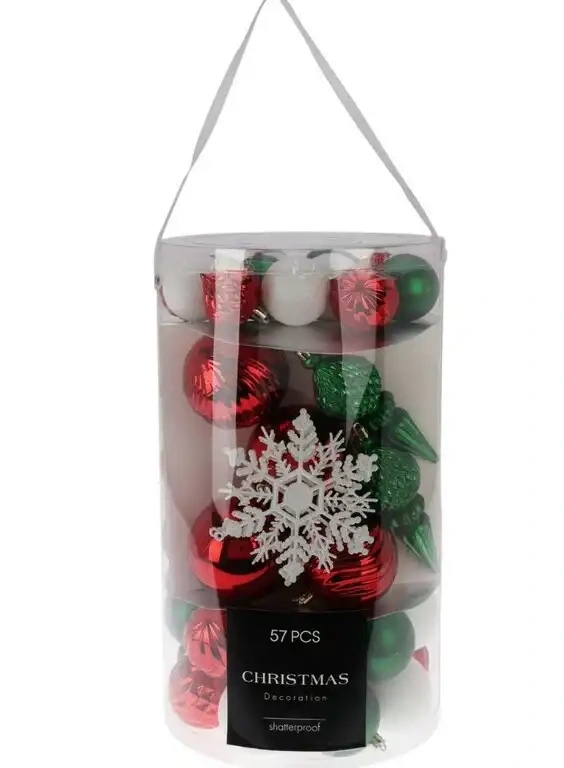 Ozdoba závesná mix sada 57 ks biela/červená/zelená
