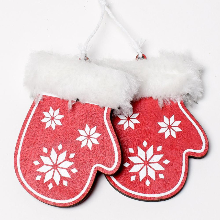 závesná ozdoba, dekorácia, rukavice, materiál drevo, rozmer 19x5x2 cm, červeno-biele