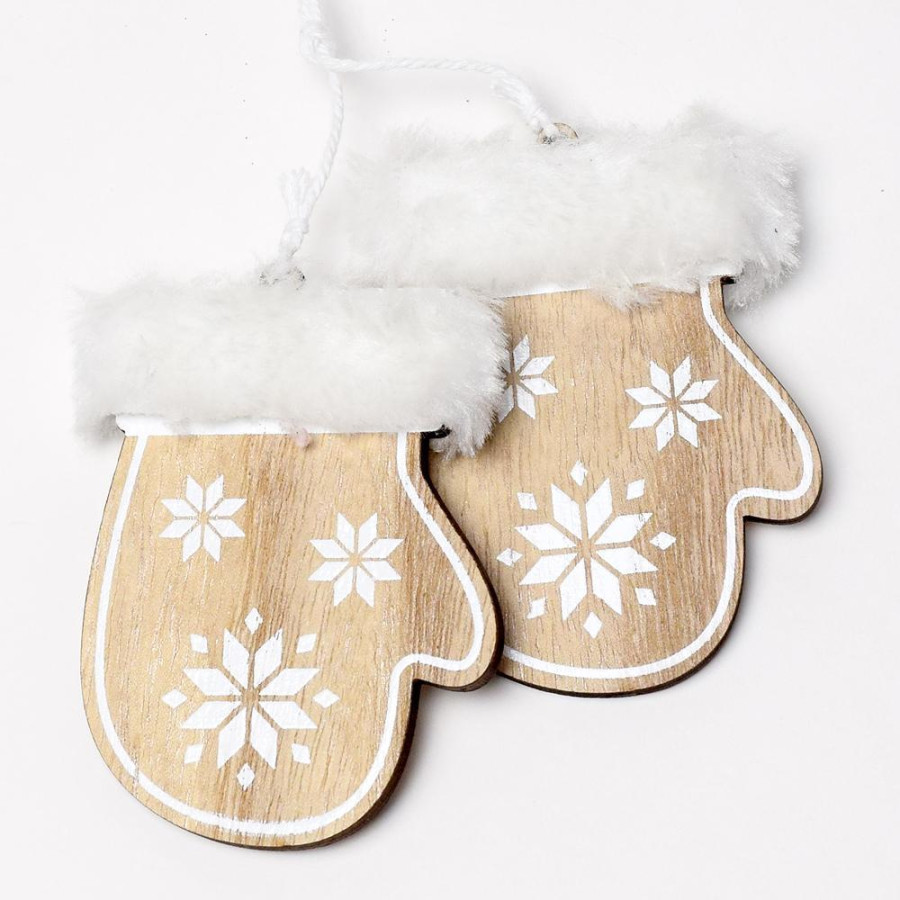 Ozdoba závesná rukavice 19x5x2 cm drevo natur