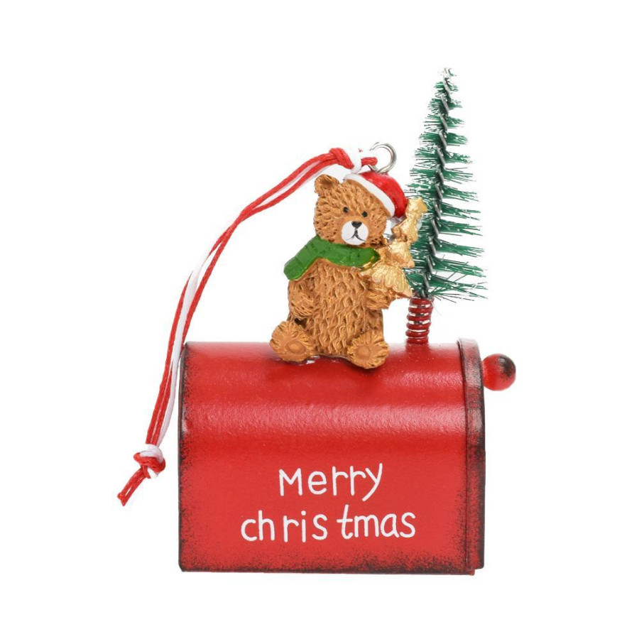 závesná ozdoba schránka s medveďom, materiál polyrezín, rozmery 7x4,5x10,5 cm, farba červená