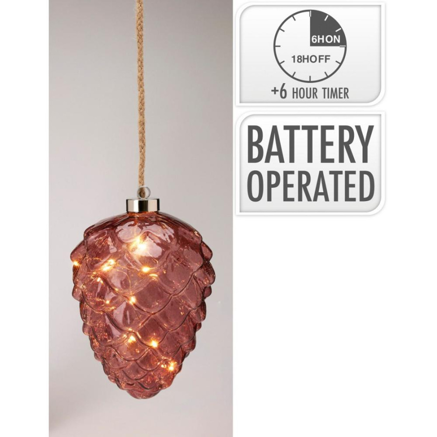 závesná ozdoba šiška, 10 LED, 12x12x16 cm, sklo, bordová, s časovačom 6 hodín zapnuté, 18 hodín vypnuté, 2xAA batérie ( nie sú súčasťou)