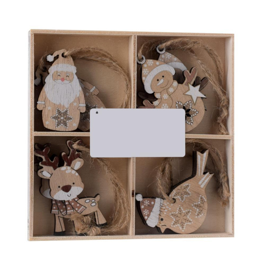 Ozdoba závesná snehuliak/Santa/sob/vták sada 8 ks drevo mix