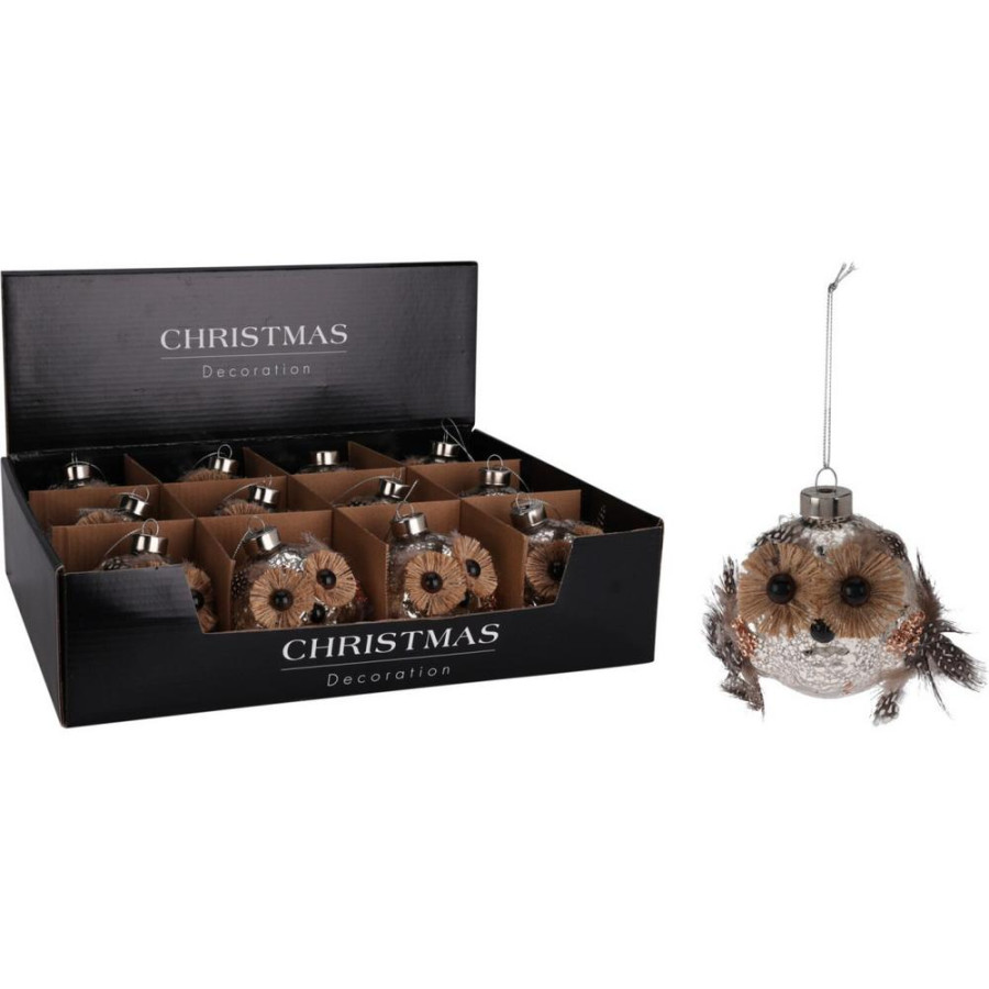 ozdoba závesná sova, materiál sklo, priemer 8 cm