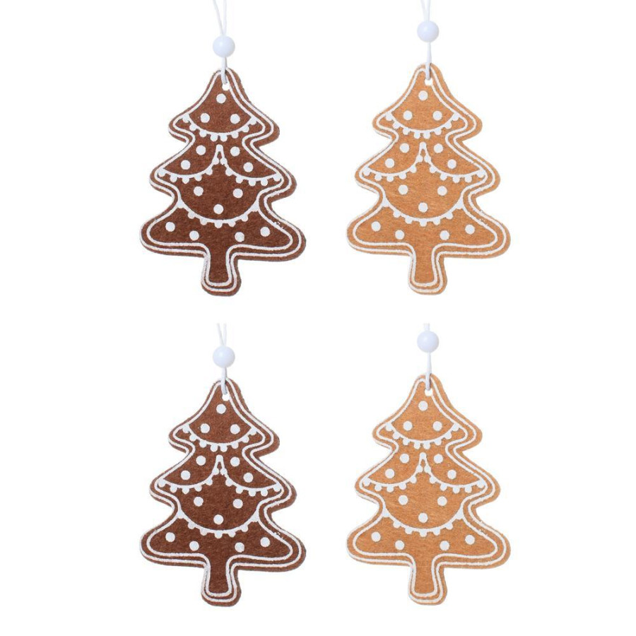 závesná ozdoba stromček, dekor perník, materiál textil, sada 4 kusov, rozmery 12x1,5x16 cm, farba hnedá mix