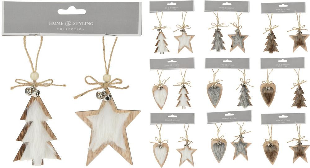 závesná ozdoba, dekorácia, stromček/srdce/hviezda, materiál drevo, rozmer 9x1x9 cm, sada 2 ks, mix