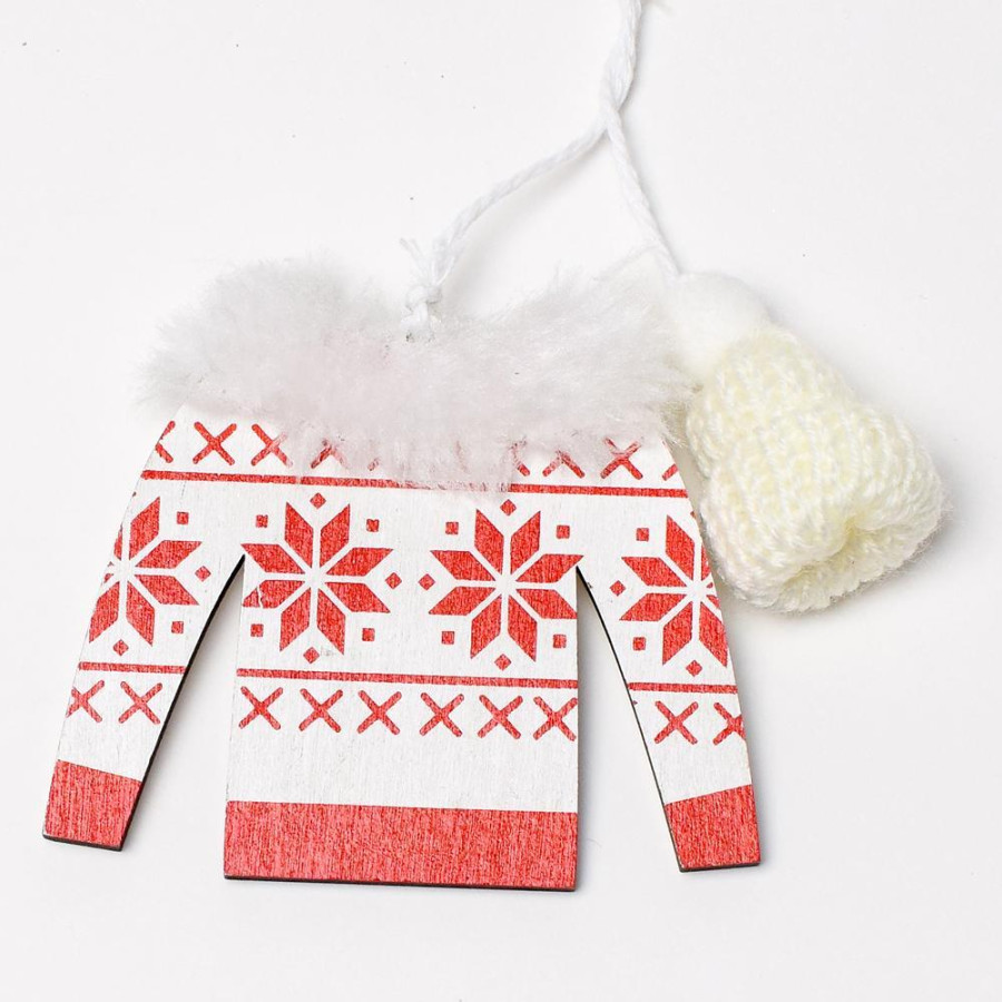 Ozdoba závesná sveter 20x8,5 cm drevo bielo-červený
