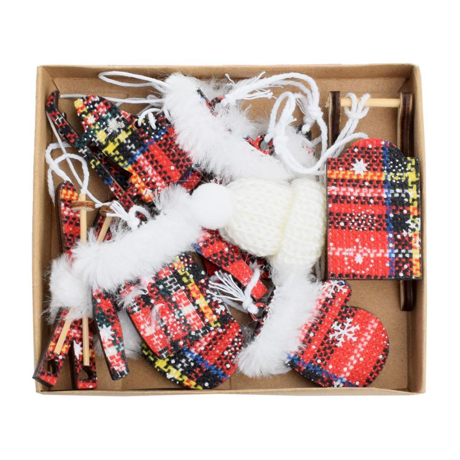Ozdoba závesná vianočný mix 13x11x2 cm sada 6 ks drevo karovaný