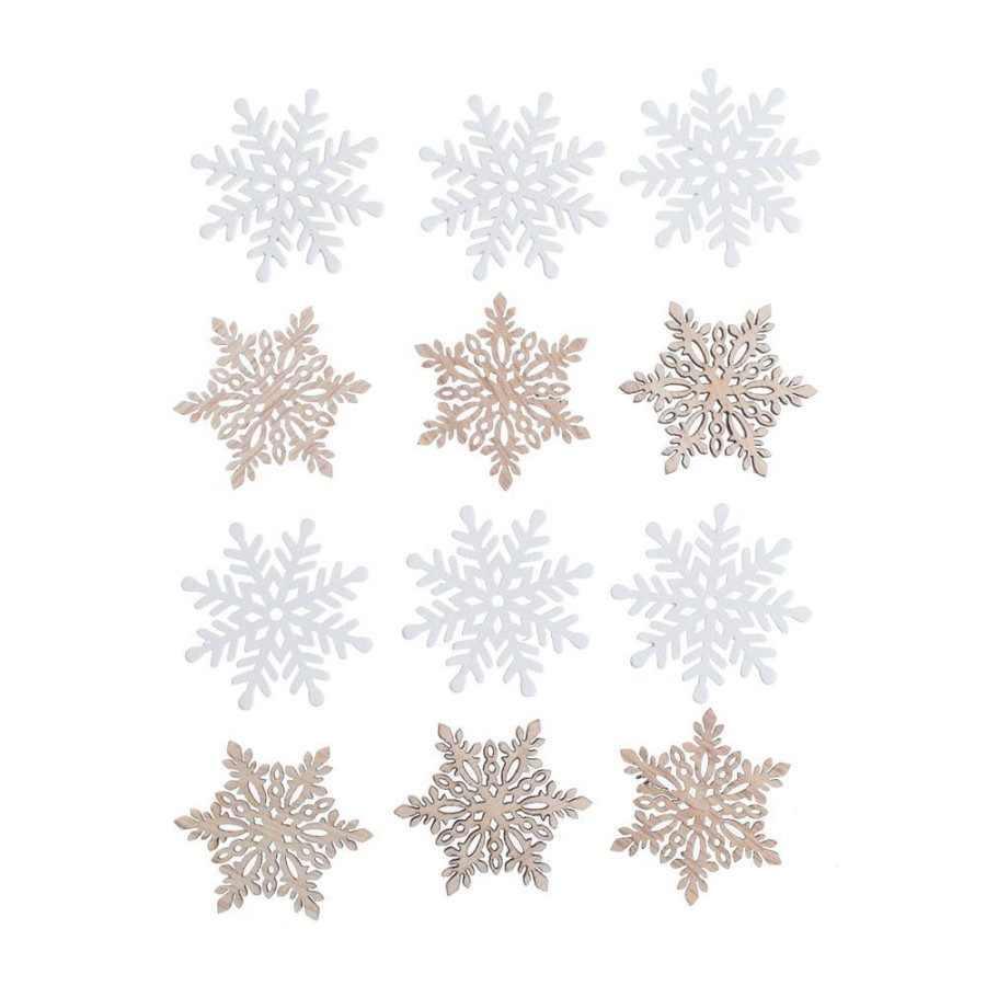 Ozdoba závesná VLOČKA 10x1x11cm drevo mix bie/nat
