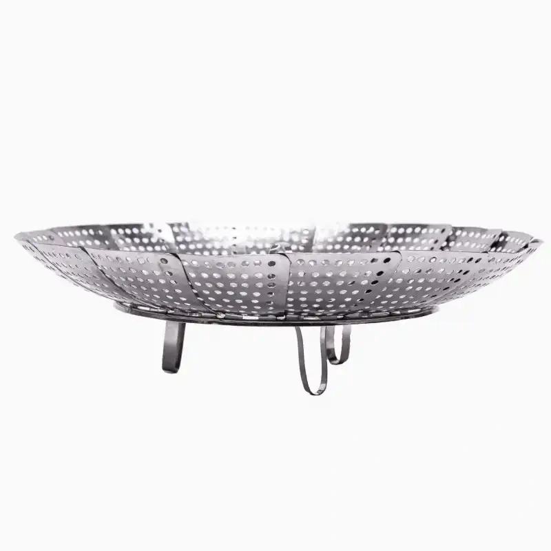 Dierovaný povrch zaisťuje dokonalú cirkuláciu pary a rovnomerné prevarenie jedla. Odnímateľné nožičky umožňujú jednoduché prispôsobenie rôznym hrncom a pohodlné skladovanie.