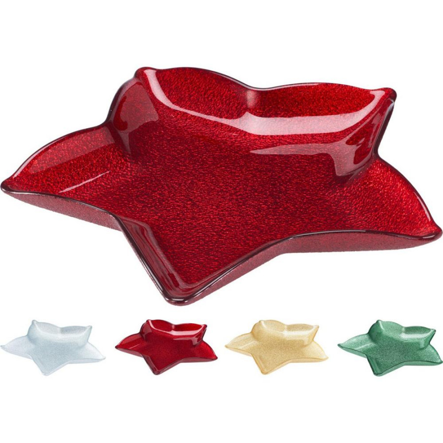 miska servírovacia, v tvare hviezdy, materiál sklo, priemer 30 cm, mix farieb