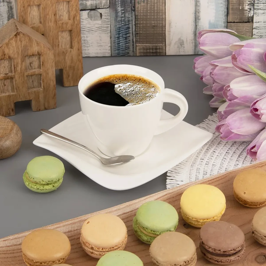 Elegantná podšálka s nevšedným, zaujímavým tvarom dodá vášmu stolovaniu jedinečný šmrnc. Je vyrobená z kvalitného porcelánu, ktorý je odolný a praktický na každodenné používanie.