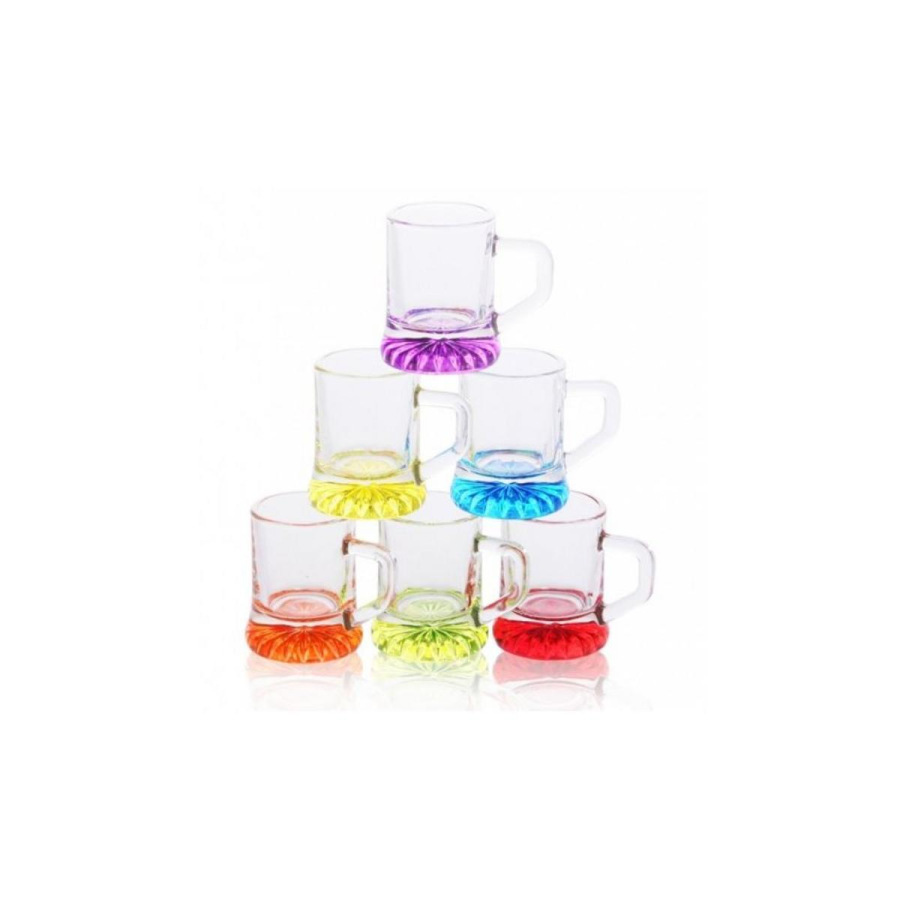 Pohár 25ml štamprlík s uškom 6ks farebný spodok KLC
