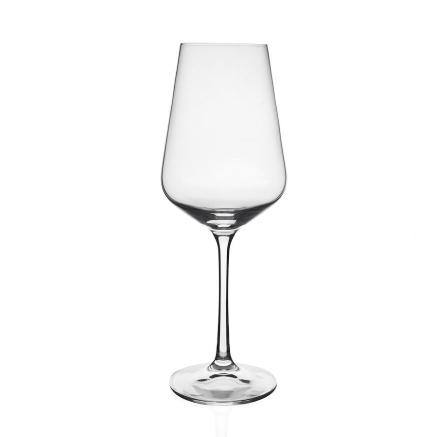 Pohár na stopke na biele víno. Materiál: Bohemia Crystal - české sklo. Sada 6 ks. Rozmery: objem 0,45 l, pr. 6/8,5 cm, v. 23,5 cm.