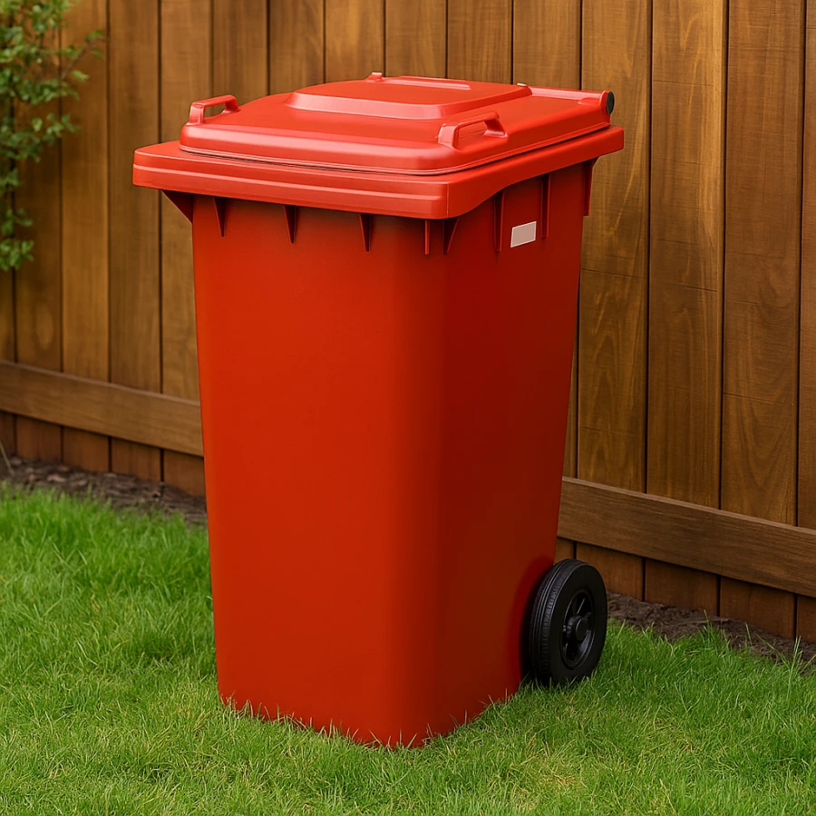 ✅ Červená plastová popolnica s objemom 240 litrov je ideálnym riešením na zber odpadu.