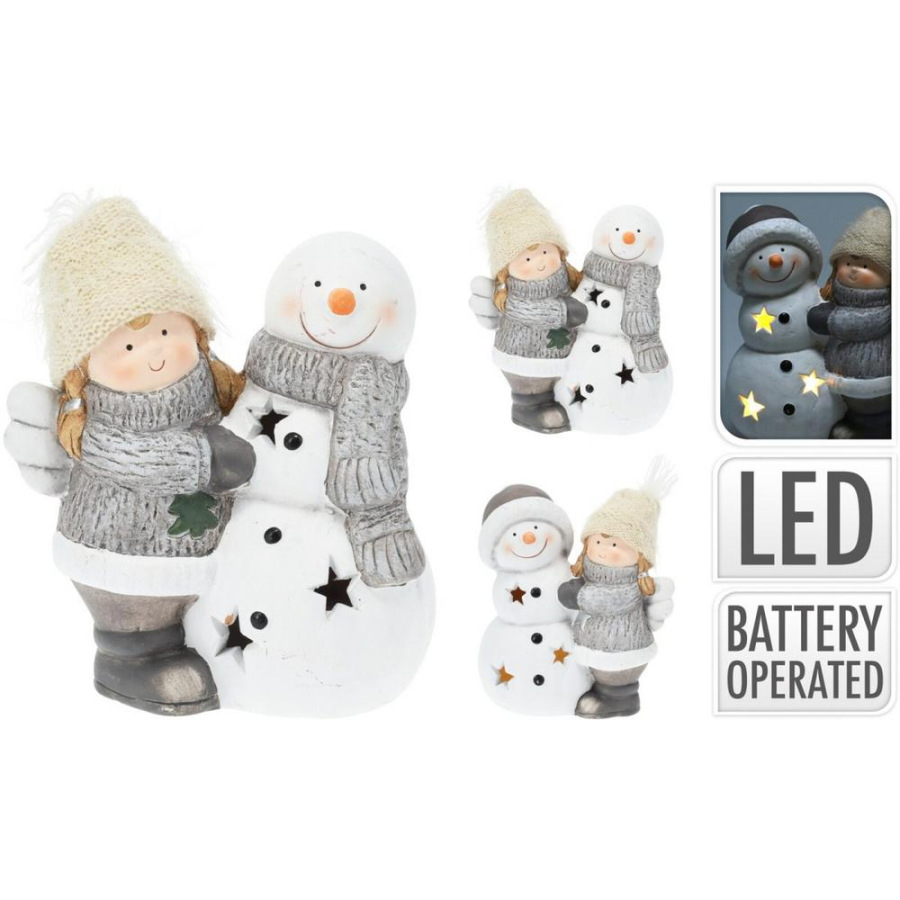 Postavička anjel so snehuliakom LED 17 cm mix