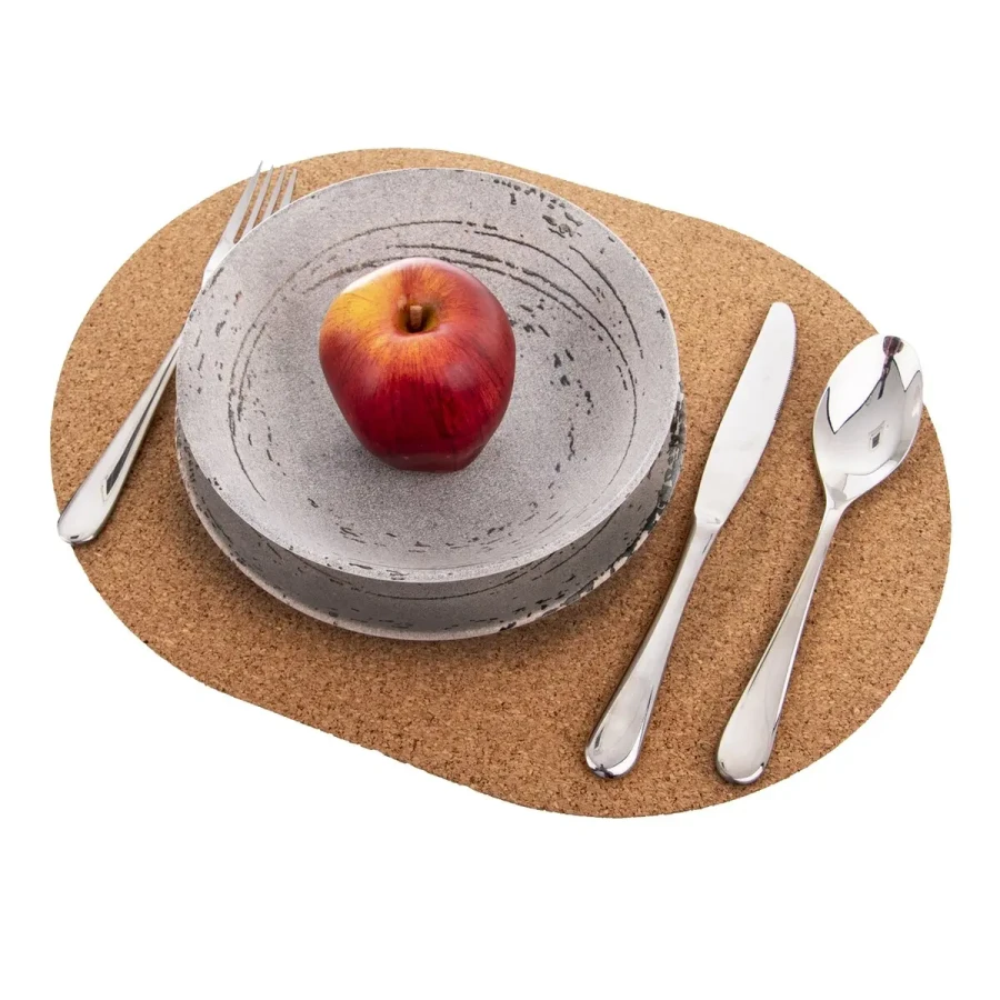 Elegantné oválne prestieranie z prírodného korku ochráni váš stôl pred poškriabaním či ušpinením a zároveň dodá stolovaniu prirodzený a štýlový vzhľad.