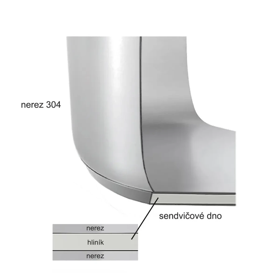 Vďaka sendvičovému dnu sa teplo rovnomerne rozkladá a energia sa akumuluje, čo umožňuje vypnúť zdroj v predstihu a šetriť elektrinu alebo plyn.