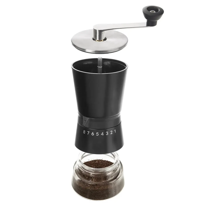 Ručný mechanický mlynček na kávu je dokonalým spojením funkčnosti, elegancie a precíznosti.