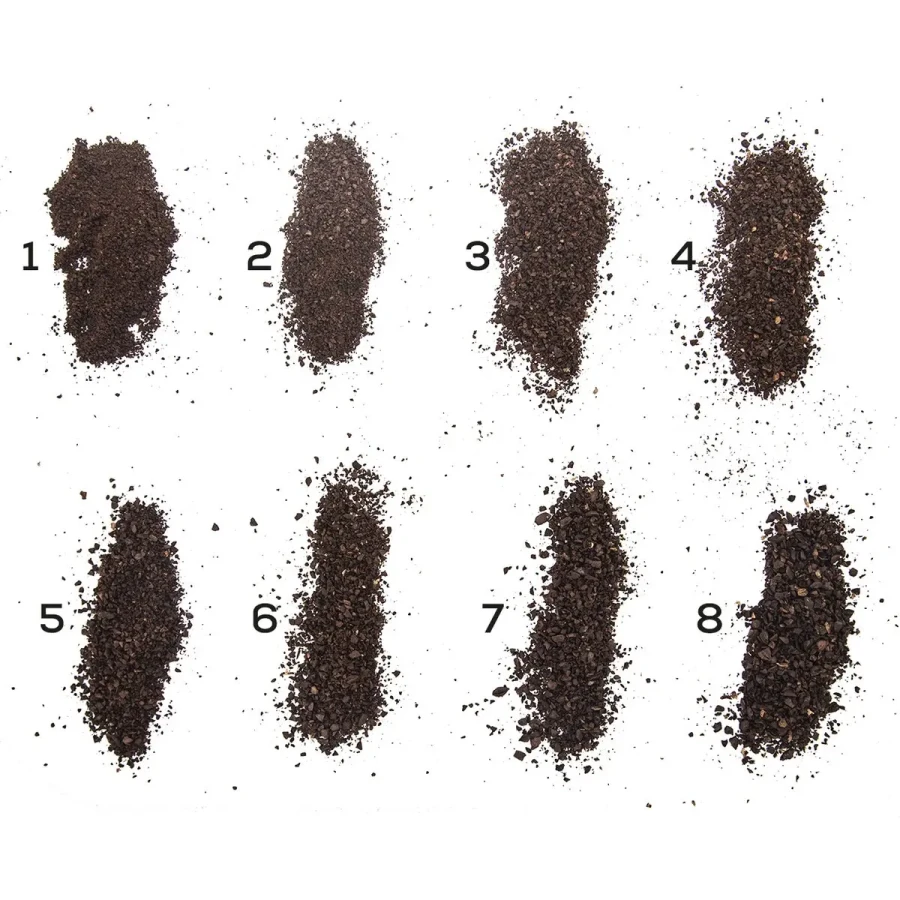 ✅ 8-stupňová regulácia hrubosti – mletie podľa typu kávy (espresso, moka, filter, french press)