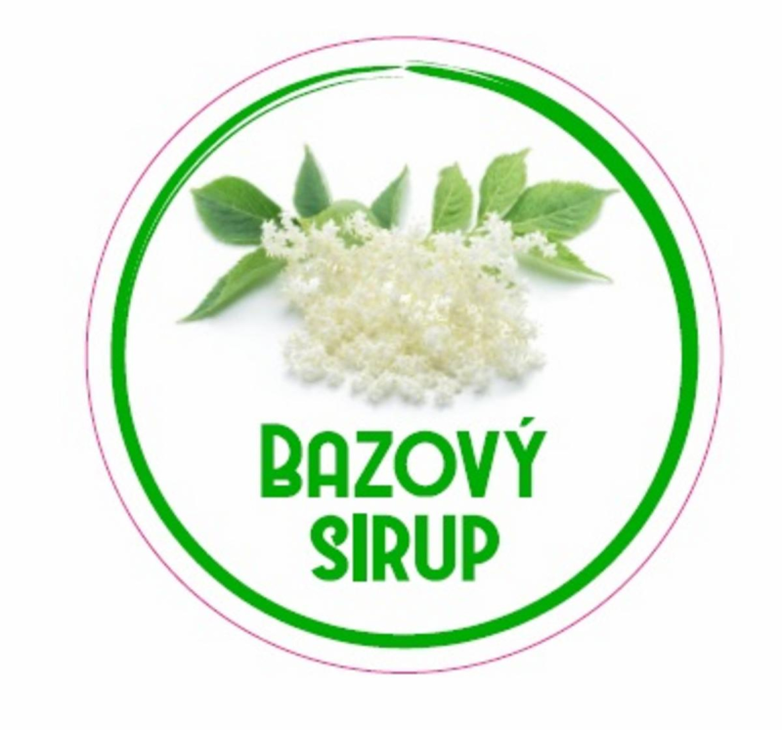 samolepka na fľašu, na domáci bazový sirup, okrúhly tvar