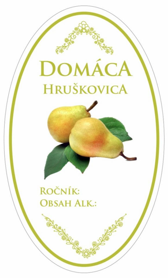 Samolepka na fľašu HRUŠKOVICA domáca ovál biela, 16ks etikiet KLC