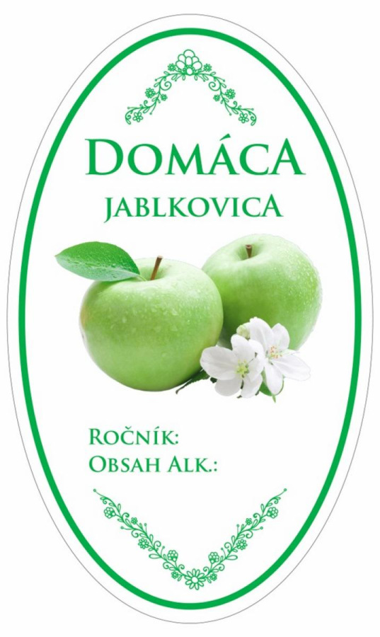 Samolepka na fľašu JABLKOVICA domáca zel. ovál biela, 16ks etikiet KLC