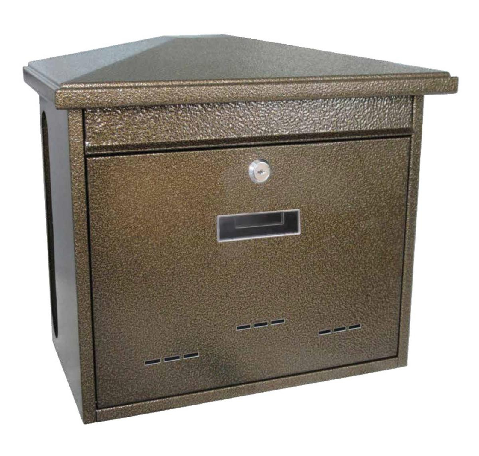 kvalitné kovove prevedenie, rozmery 36x34x18 cm, so zadnym priecinkom na letáky, je určená do interiéru aj exteriéru, vratane okienka na menovku a zamku s klucom 2x