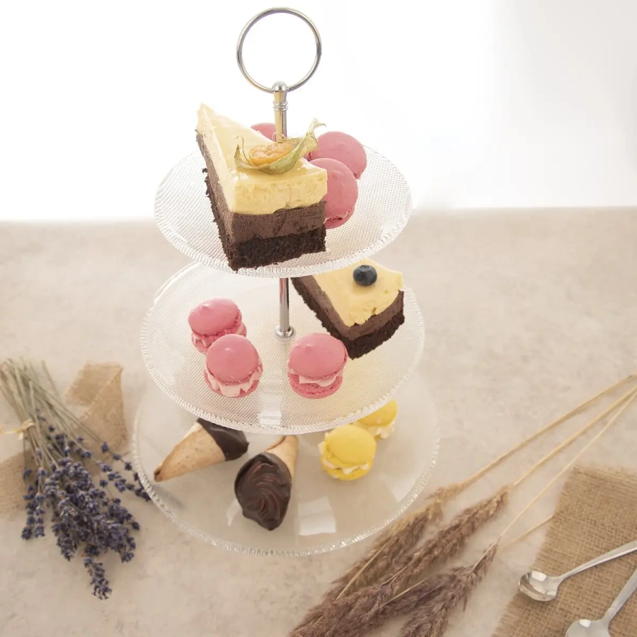 Sklenené taniere dodávajú jemnosť a čistotu, zatiaľ čo kovová konštrukcia zaručuje pevnosť a stabilitu. Výsledkom je stojan, ktorý okúzli vzhľadom a zároveň sa ľahko používa.