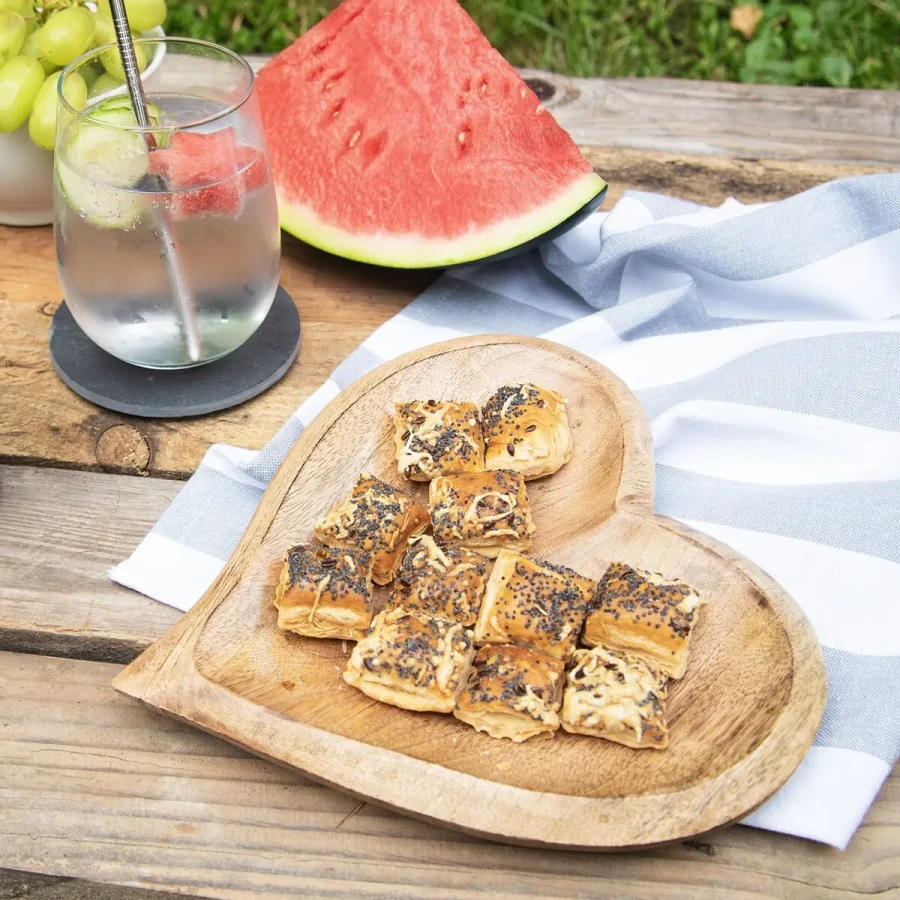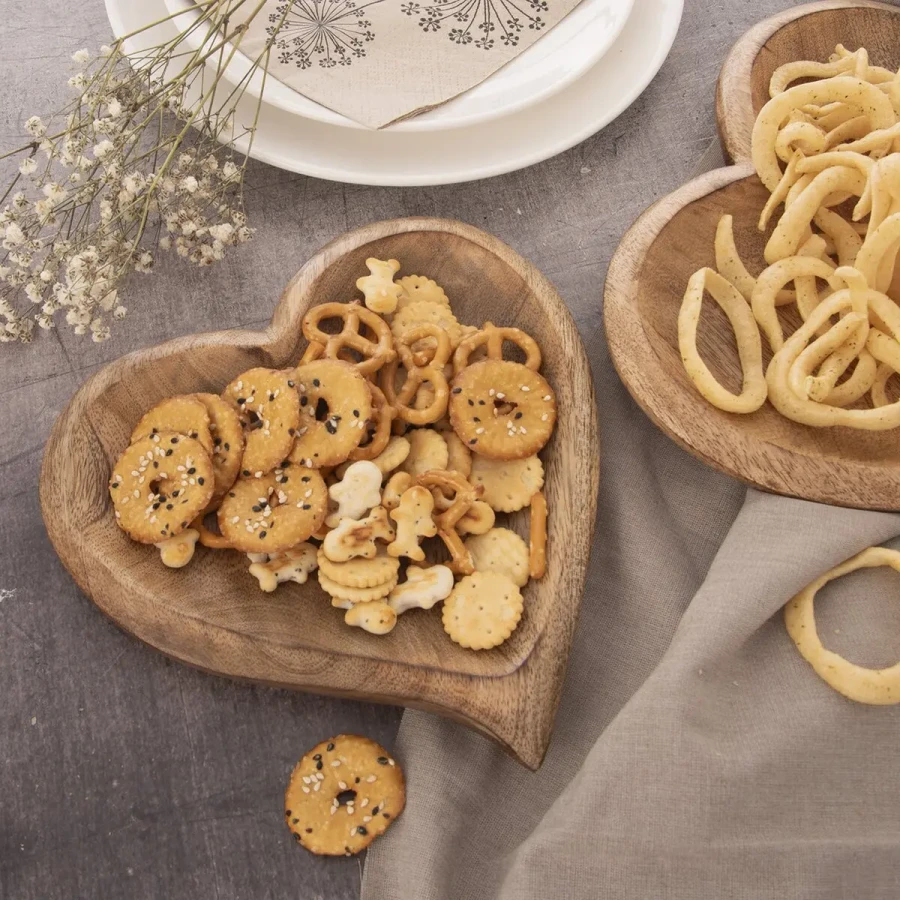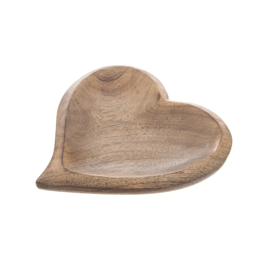 Romantická servírovacia tácka z mangového dreva v tvare srdca je ideálna na servírovanie suchých plodov, orechov, cukríkov, cukroviniek, zákuskov, jednohubiek či drobného pečiva.