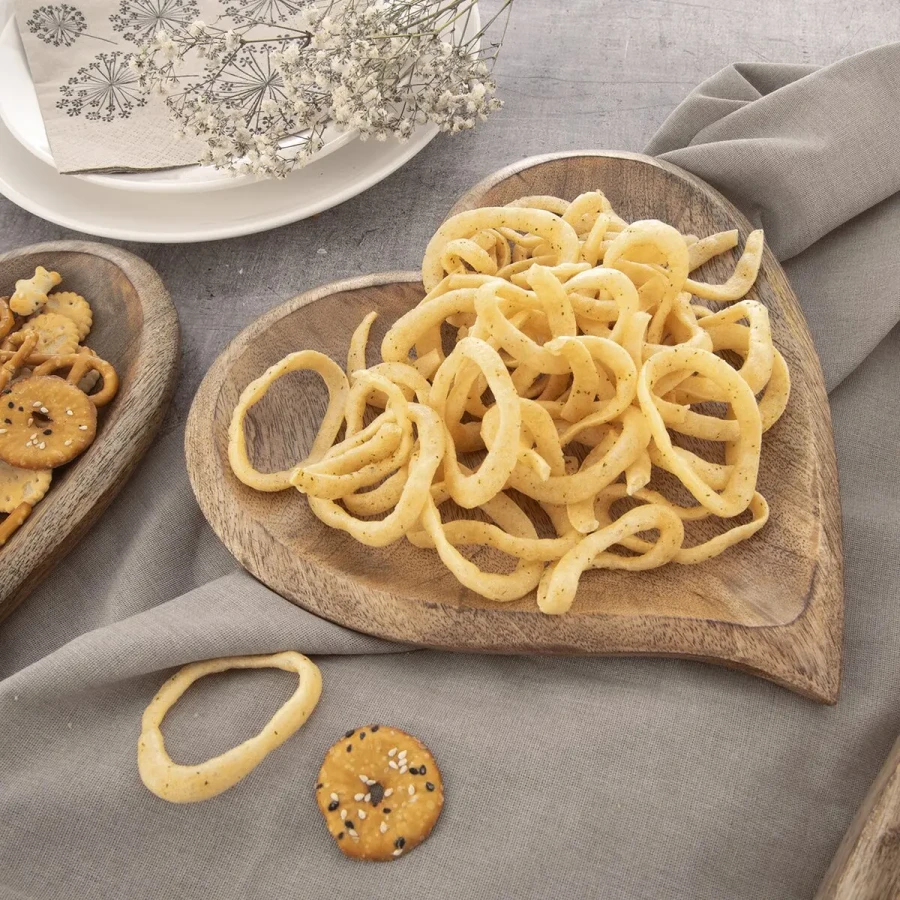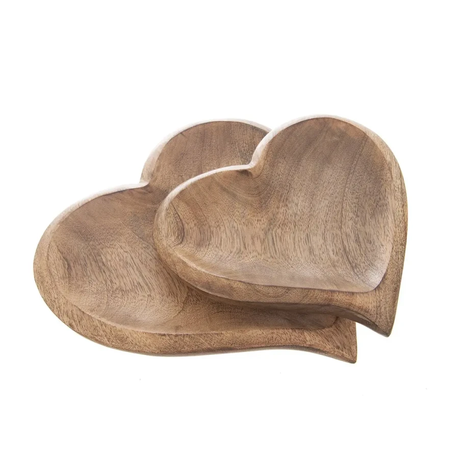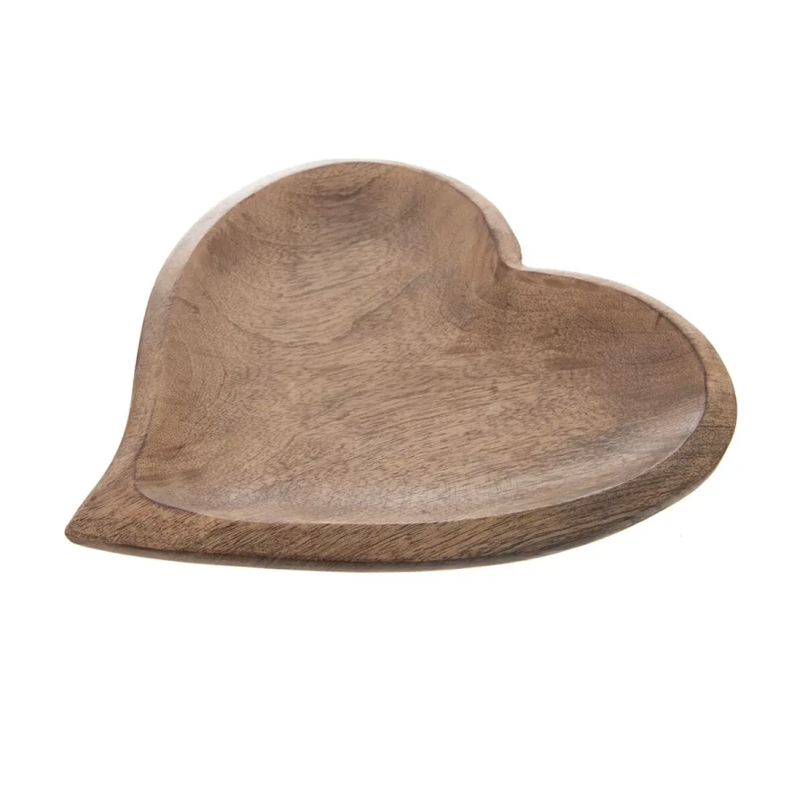 Štýlová tácka z mangového dreva v tvare srdca je ideálna na servírovanie rôznych pochutín – od orechov, sušeného ovocia a cukríkov až po chlebíčky, jednohubky či zákusky.