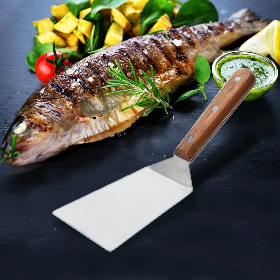 Široká obracačka 27 cm – nerezová obracačka s drevenou rukoväťou