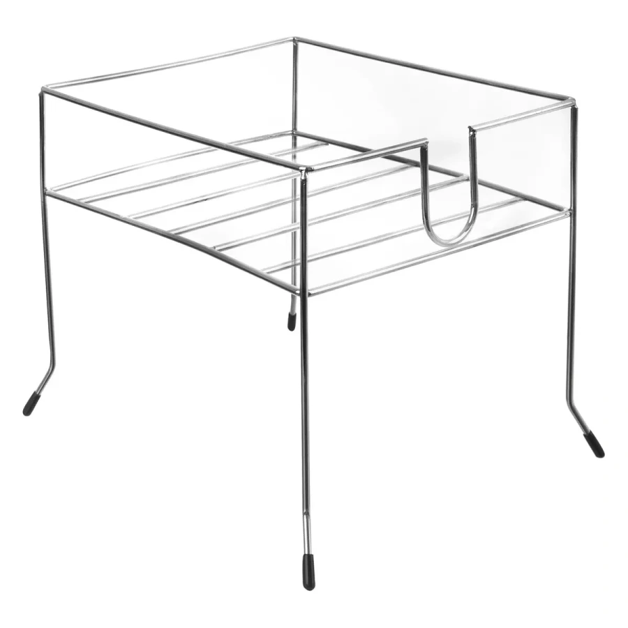 Plastové krytky na nožičkách chránia povrchy a znižujú riziko poškodenia, zatiaľ čo moderné pochromovanie dodáva stojanu elegantný, čistý a profesionálny vzhľad.