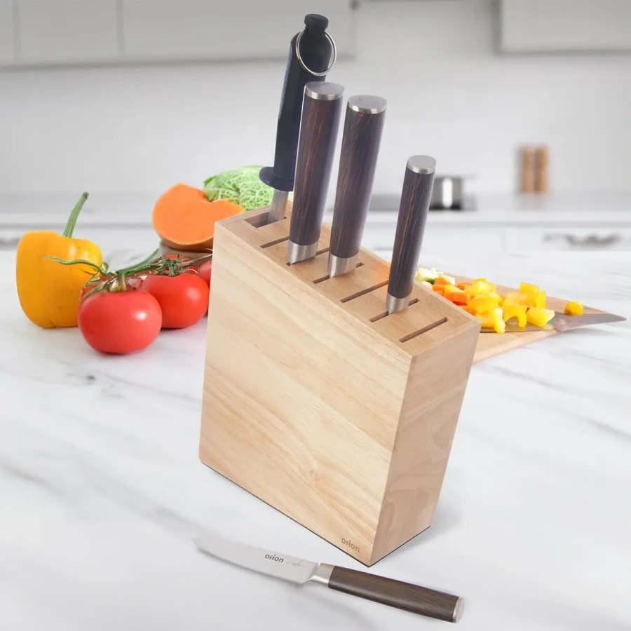 Stojan na nože z gumovníkového dreva prináša spojenie krásy, bezpečnosti a praktického uloženia.