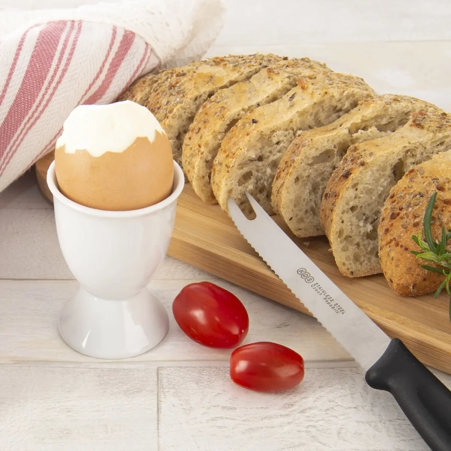 Vďaka stabilnej konštrukcii stojan udrží vajíčko pevne na mieste, čo zaručí komfortné stolovanie bez rozliatia. Biely porcelán pôsobí luxusne a zároveň je univerzálny – hodí sa na bežné raňajky aj slávnostný stôl.