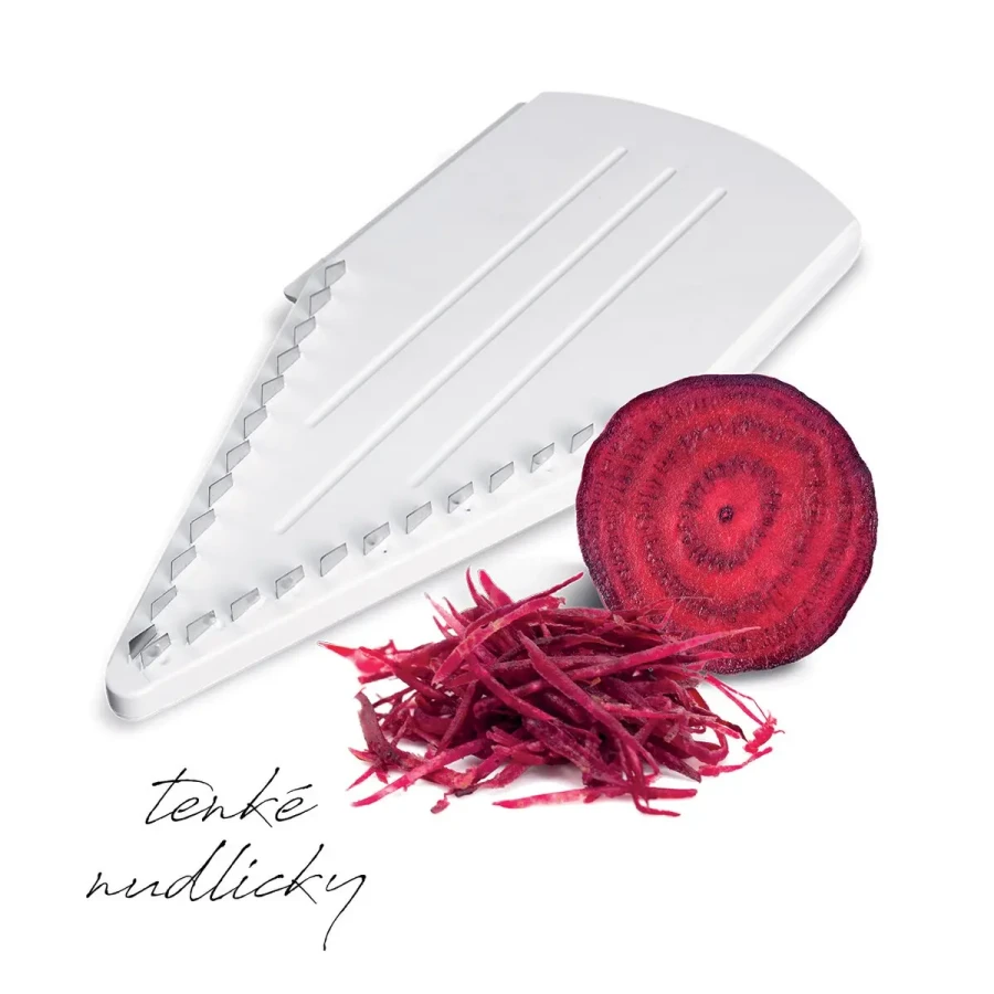 Viacúčelový krájač / strúhadlo vám ušetrí čas pri príprave ovocia, zeleniny aj ďalších surovín.