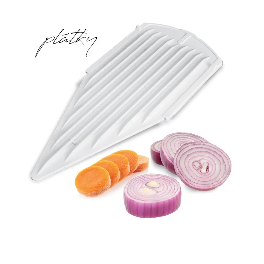 Krájač / viacúčelové strúhadlo je spoľahlivý pomocník na prípravu plátkov aj hranolčekov.