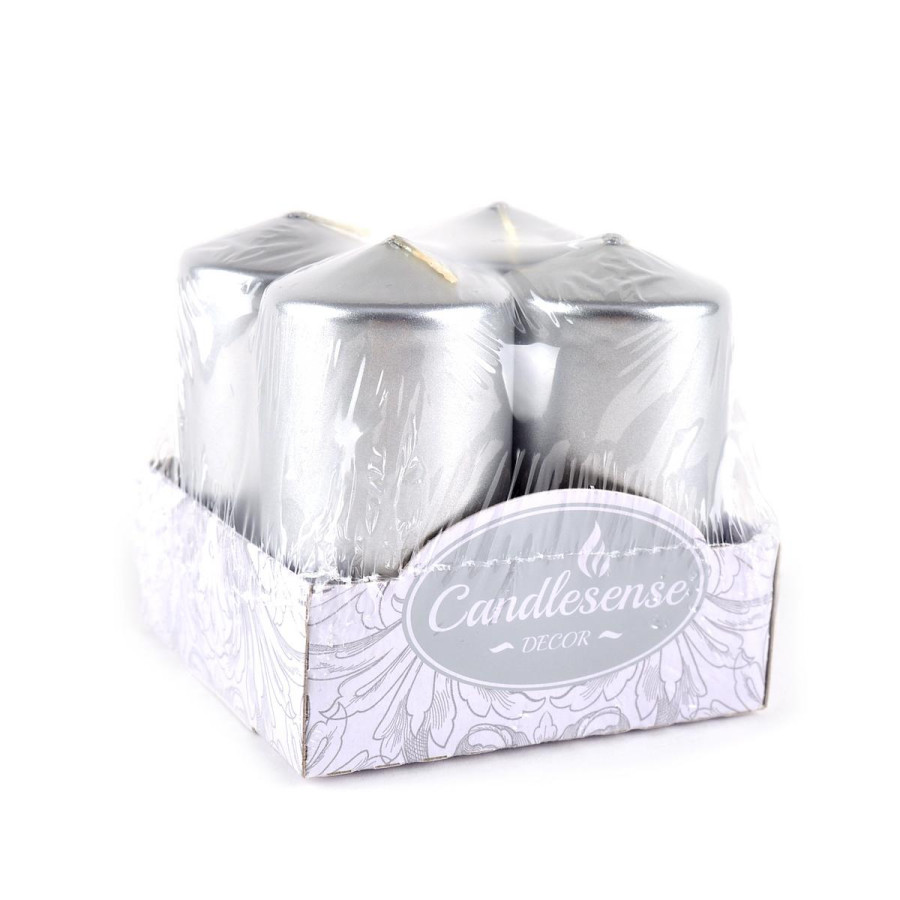 adventná sviečka, hmotnosť 80g, balenie 4ks, doba horenia max 9 hod, rozmery 80x40mm, farba metalická strieborná