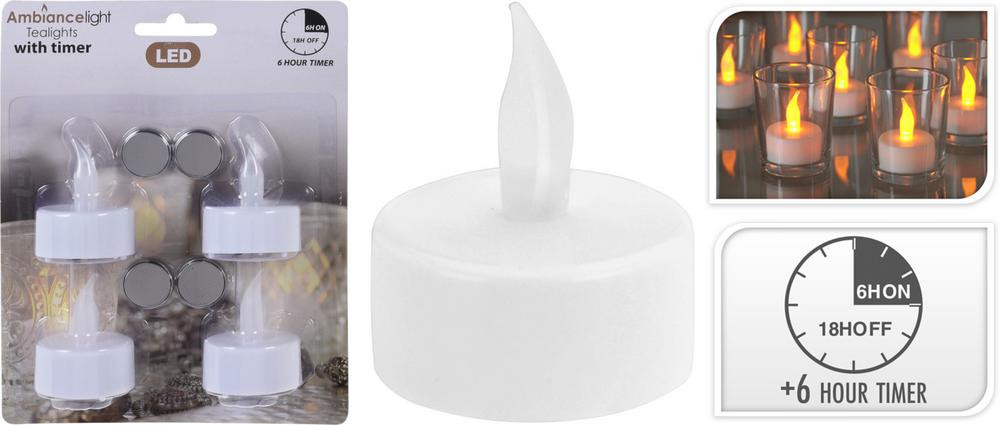 Sviečka čajová LED sada 4 ks, s časovačom, baterky