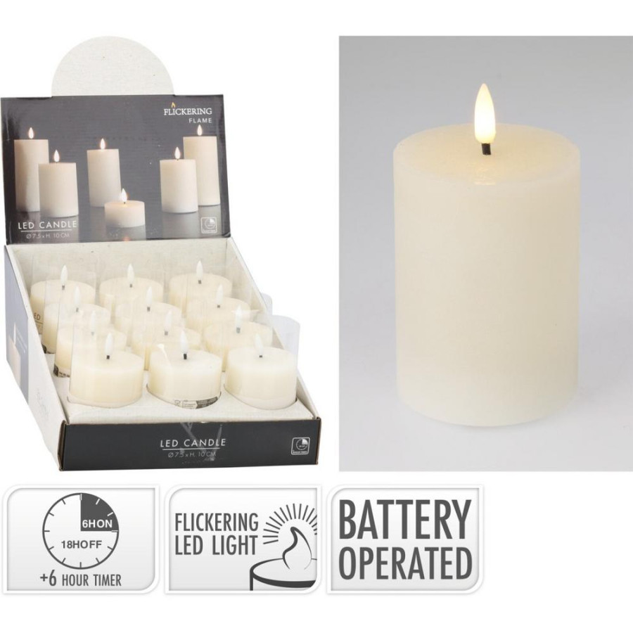 Sviečka LED 7,5x10 cm s časovačom ivory
