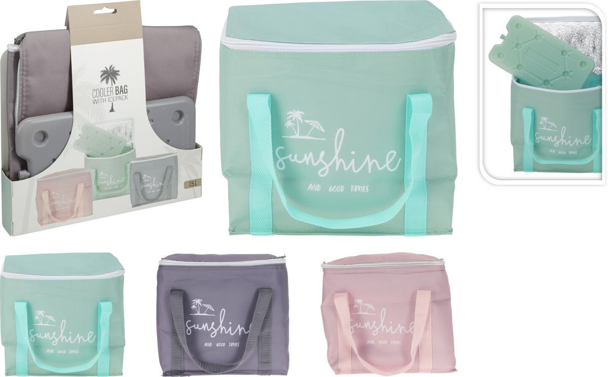 chladiaca taška s chladiacou vložkou, sada, objem tašky 7,5 l, rozmery tašky 25x15x23 cm, rozmery chladiacej vložky 25x14 cm, mix