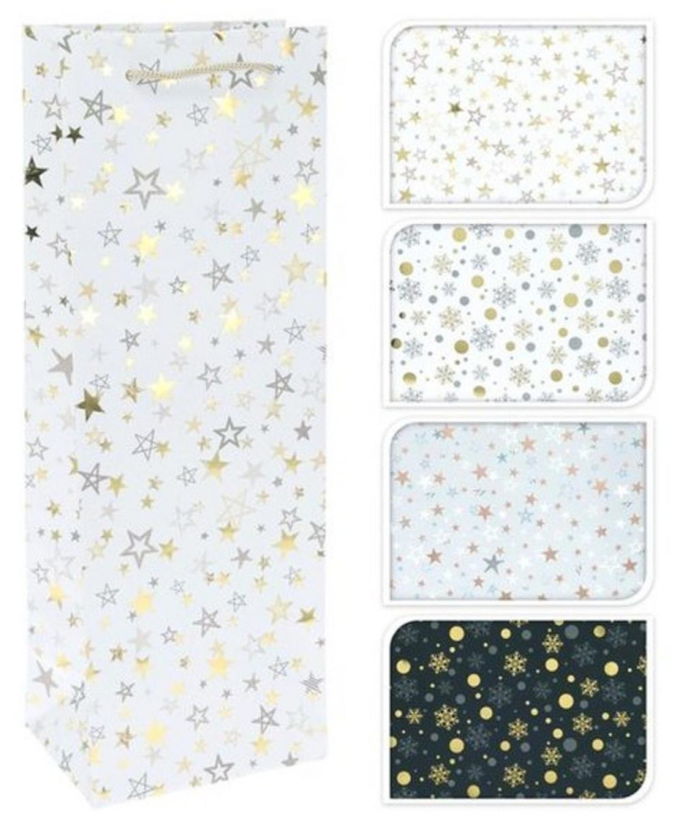 taška darčeková na víno, rozmery: 12,5X9X35cm, mix 4 dizajnov