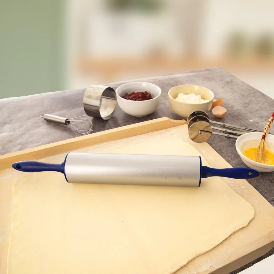 Valček na cesto s postrannými zarážkami 25 cm ti zaručí dokonalú presnosť, úsporu času a profesionálne výsledky pri každom pečení.