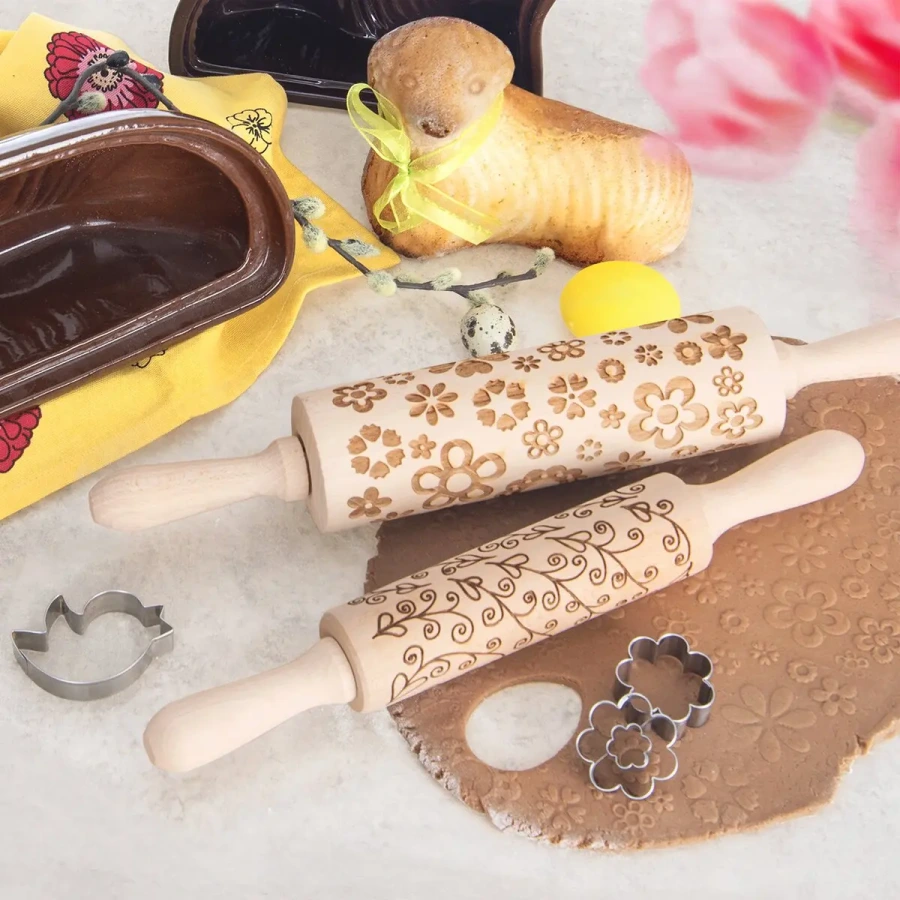 Tradičný drevený dizajn doplnený kvetinovým reliéfom dodá tvojmu pečeniu jedinečný vzhľad – bez potreby formičiek či zdobiacich nástrojov.