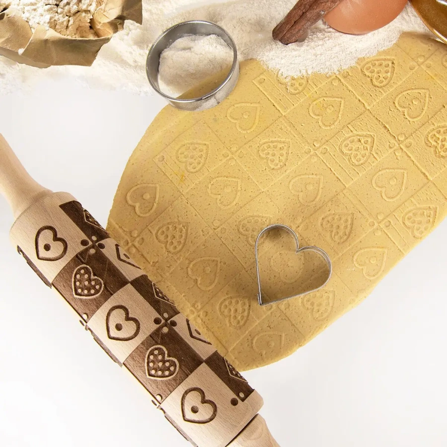 ❤️ Valček na cesto SRDCE 16 cm | Drevený valček so vzorom z bukového dreva