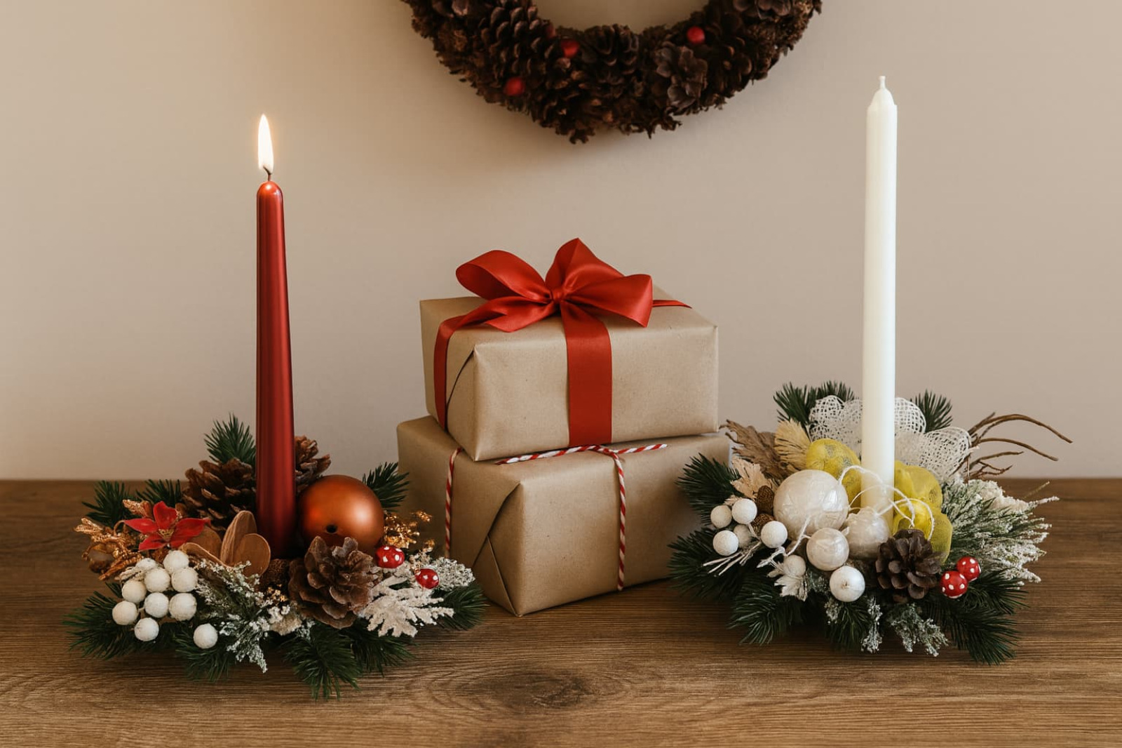 ✔ Áno, perfektne ladí so stromčekmi, svietnikmi, vencami či girlandami.